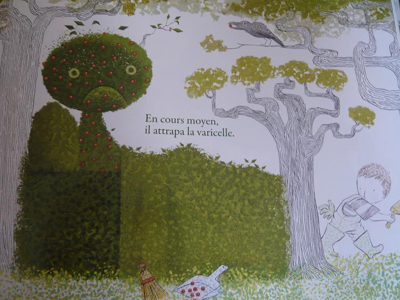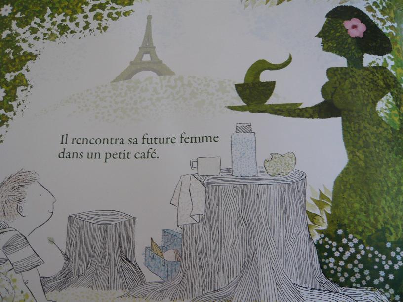, la version cartonnée pour les tout-petits!). Avec L’histoire en vert de mon grand-père il transforme une histoire somme toute assez classique en un album vraiment splendide. L’idée des arbustes sculptés donne une autre dimension à cette balade d’un petit garçon dans la mémoire de son grand-père. On sent monter au fil des pages tout l’amour et l’admiration de ce petit homme pour son aïeul. C’est beau, c’est tendre, une petite merveille vraiment.