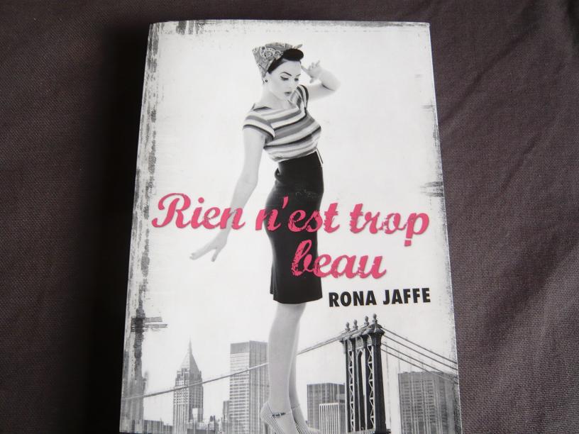 - Ma lecture en cours: Rien n’est trop beau de Rona Jaffe (Editions Presses de la cité) qui suit les destins de plusieurs jeunes femmes travaillant dans une maison d’édition New-Yorkaise dans les années 50. Je ne l’ai pas encore fini mais je peux déjà vous assurer que ce sera un coup de coeur (et en plus la couverture est superbe!)