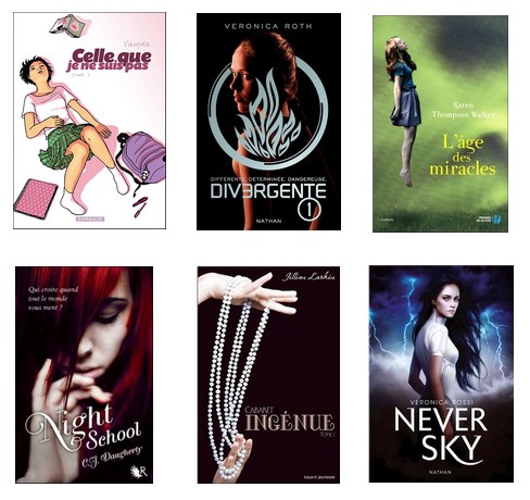 Du côté des romans YA: tome 2 de Veronica Roth. Mais aussi Never Sky de Veronica Rossi, L’âge des miracles de Karen Thompson Walker, Night School de C. J. Daugherty (billets à venir).