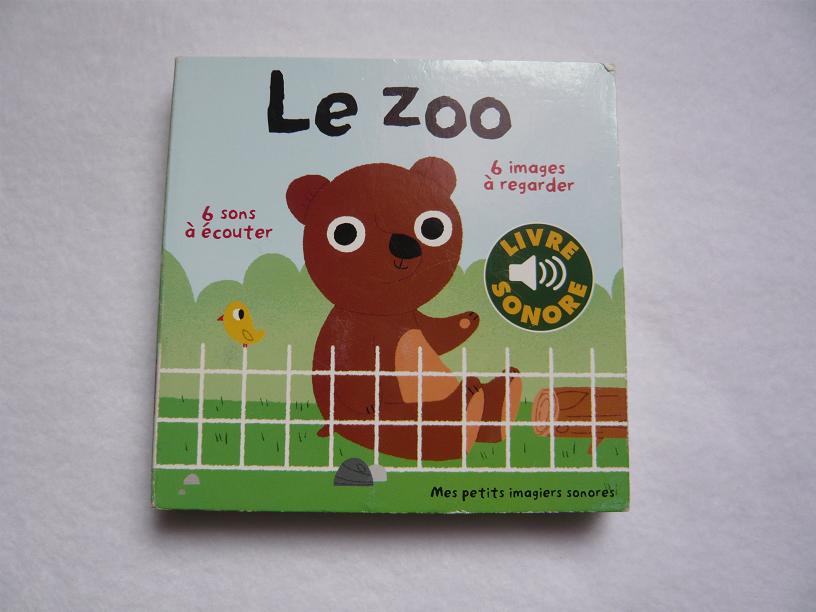 Gros succès de ces imagiers auprès de ma fille qui a passé des heures et des heures à les parcourir. Elle  a testé 5 titres:  Mes animaux (autour des animaux domestiques), La ferme, Les oiseauxLe zoo (Succès assuré quand l’enfant imite le koala, la flamand rose ou le serpent!).  Mon préféré reste Les instruments avec lequel l’enfant peut découvrir le violon, la guitare, le tambour, le piano, la flûte et le xylophone  (Un 2ème tome vient d’ailleurs de sortir).