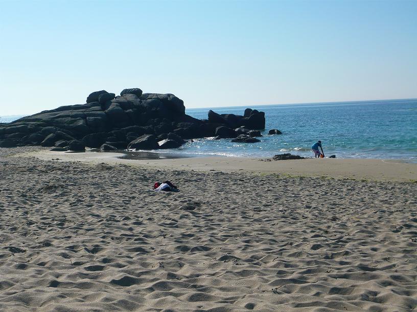 Etape n° 1 : Vendredi 25 juin, arrivée en début d’après-midi à Plouescat, sur la côte nord du Finistère (pays de l’artichaut!). Petite déception en découvrant notre chambre à l’hôtel Cap Ouest, impersonnelle et sale, alors que l’établissement est neuf. La chambre n’avait visiblement pas été nettoyée avant notre arrivée, l’aspirateur a quand même été passé à notre demande (!). Heureusement il fait beau, donc nous avons pu nous échapper pour profiter de la plage puis dîner au “Bistrot des Halles” dans le bourg de Plouescat, petit resto sans prétention mais très chaleureux. Le lendemain ma moitié a pratiqué le char à voile dans la baie du Kernic grâce au centre nautique de Plouescat, et il a adoré cette première expérience.